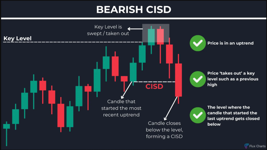 إذا أغلق السعر فوق هذا المستوى، فإن ذلك يُعد CISD صاعد.