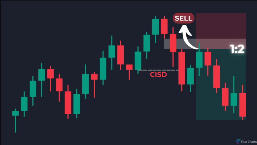 عند ظهور CISD هابط: يعني أن السوق قد يتحول إلى الهبوط، ويمكنك البحث عن فرص بيع من نفس المستويات.