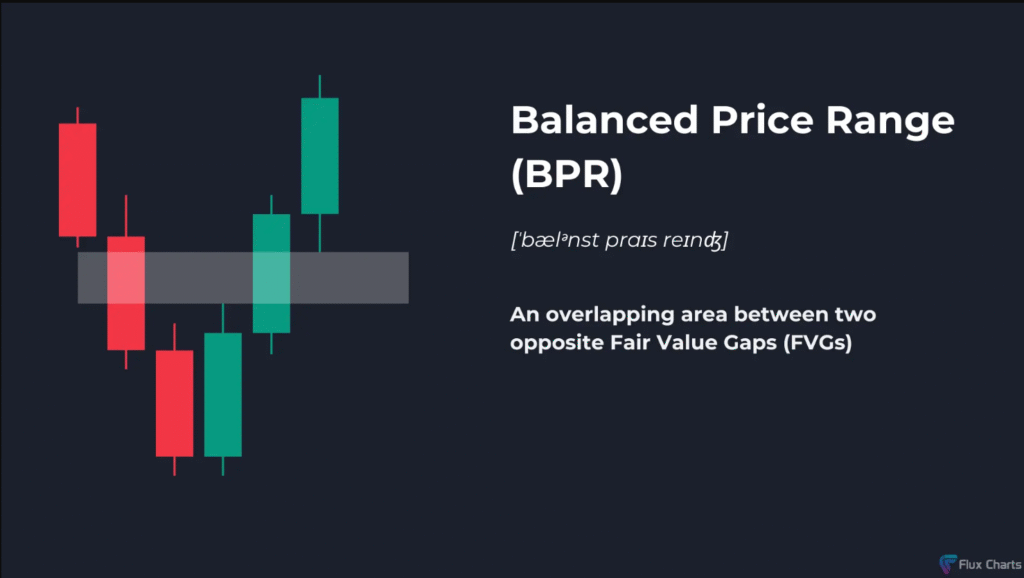 يُعد النطاق السعري المتوازن (Balanced Price Range – BPR) من المفاهيم المتقدمة في تداول حركة السعر، ويُستخدم بشكل خاص من قبل متداولي “السمارت موني” أو ICT. النطاق السعري المتوازن هو منطقة تتداخل فيها فجوتان سعريتان عادلتان (Fair Value Gaps – FVGs)، وغالبًا ما يُستخدم كنقطة دخول خلال التصحيحات في الاتجاه العام للسوق.