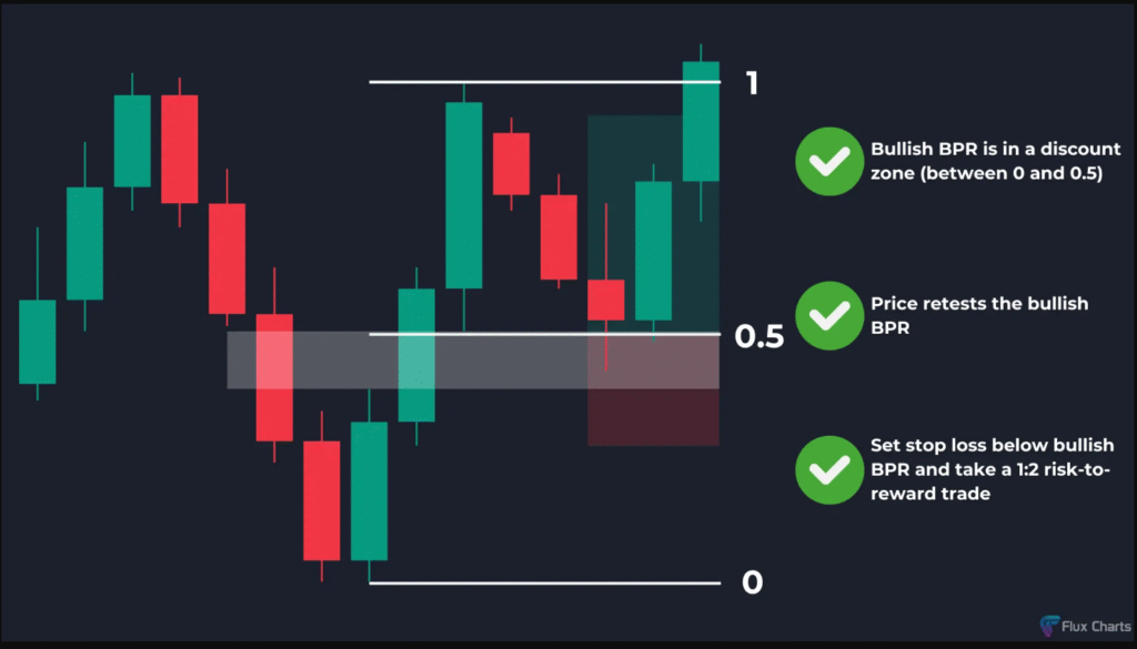 يتشكل BPR صاعد داخل منطقة الخصم (Discount Zone).