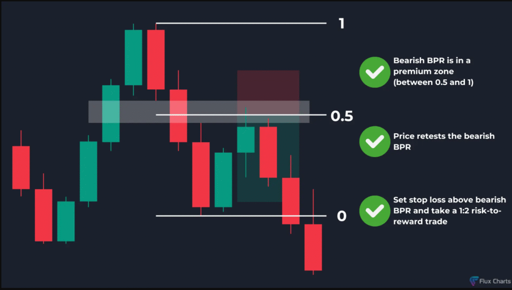 يتشكل BPR هابط داخل منطقة القمة (Premium Zone).