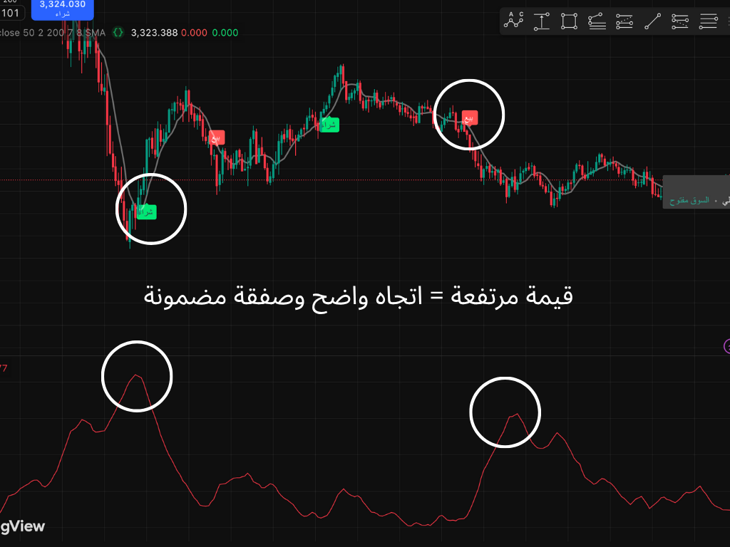 مؤشر ATR لتصفية الإشارات وفقاً لتقلبات السوق.
