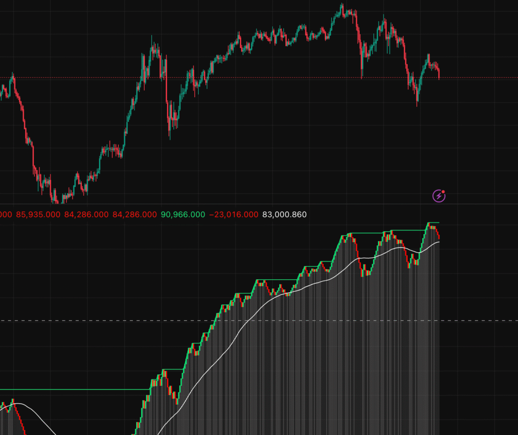 عند تجميع هذه الفروقات بشكل تراكمي، نحصل على ما يسمى بـ: Cumulative Delta Line.