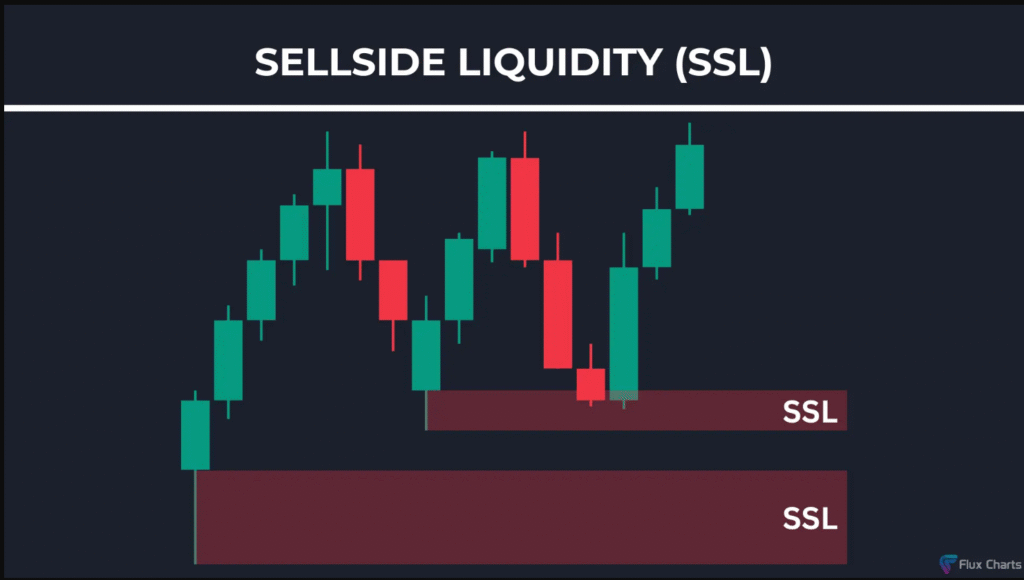 - سيولة البيع (Sellside Liquidity – SSL):