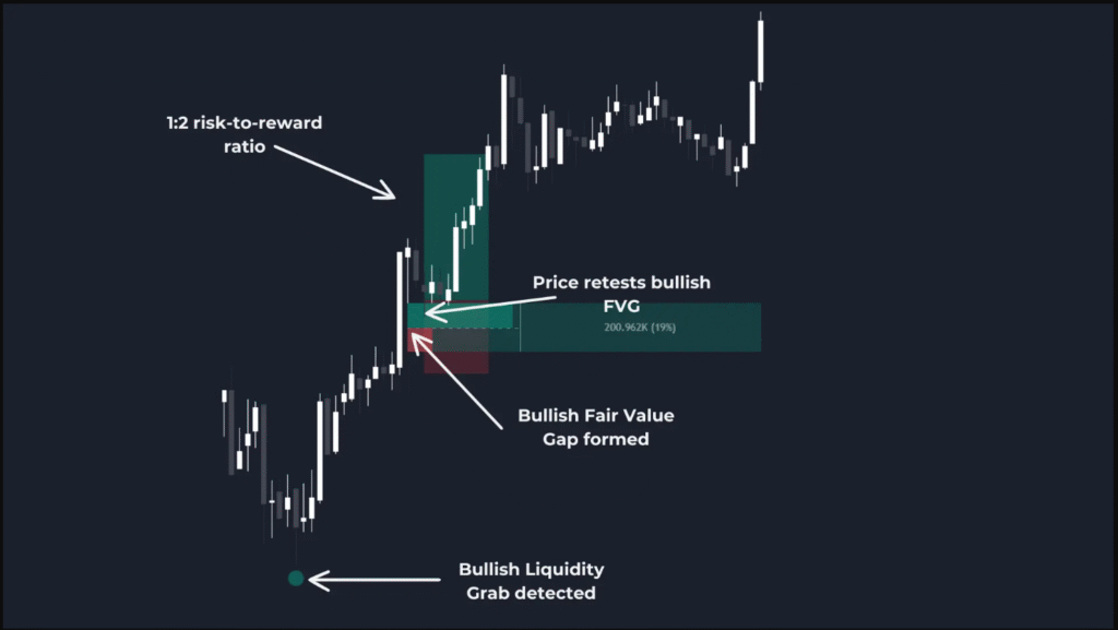 - يُشكّل السعر فجوة قيمة عادلة (FVG) صعودية.