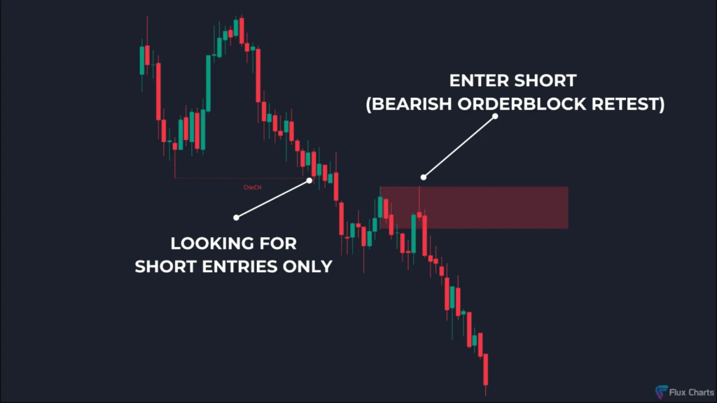 - إذا تكوّن CHoCH هابط، يبدأ المتداول في البحث عن فرص بيع.