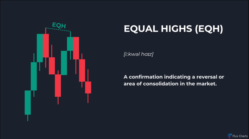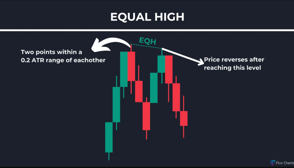 القمم المتساوية (EQHs) هي مفهوم يُستخدم في تداول حركة السعر (Price Action)، وخاصة من قبل متداولي SMC (هيكل السوق الذكي) أو ICT.