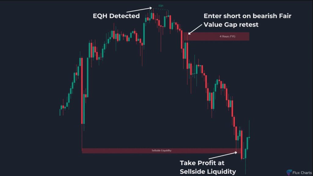 مثال على EQH مع فجوة القيمة العادلة الهابطة (Bearish FVG)